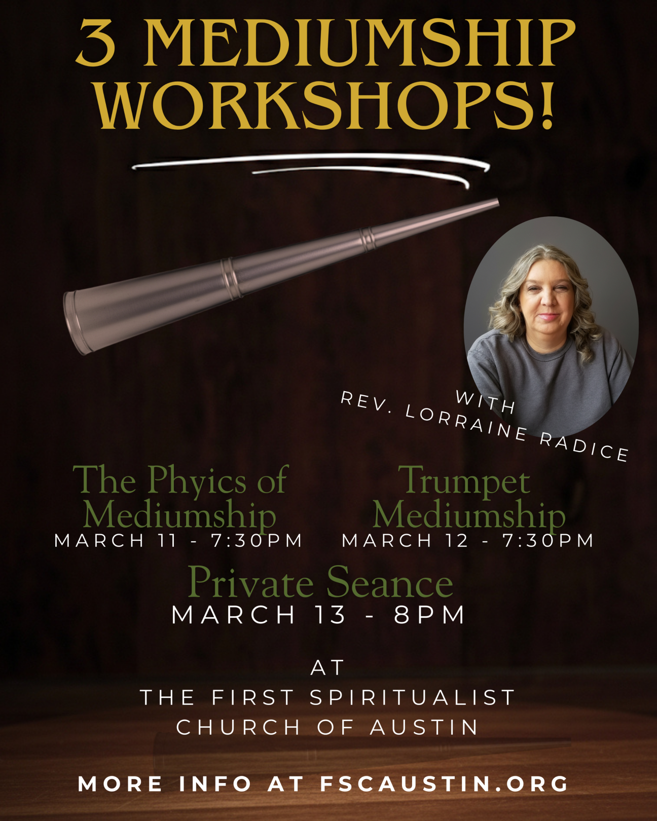 All events will take place at The First Spiritualist Church of Austin. For more details and to reserve your spot below!